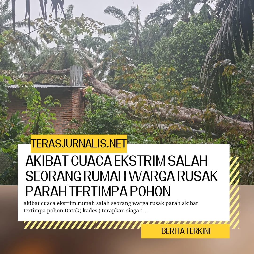 Sebuah rumah milik warga di Dusun Semenanjung, Desa Air Tenang, Kecamatan Karang Baru, Aceh Tamiang, mengalami kerusakan parah setelah tertimpa pohon durian dan bangunan Mushala. Peristiwa ini terjadi pada Rabu (26/11/2025) dini hari, sekitar pukul 02.00 WIB, di tengah guyuran hujan deras disertai angin kencang.