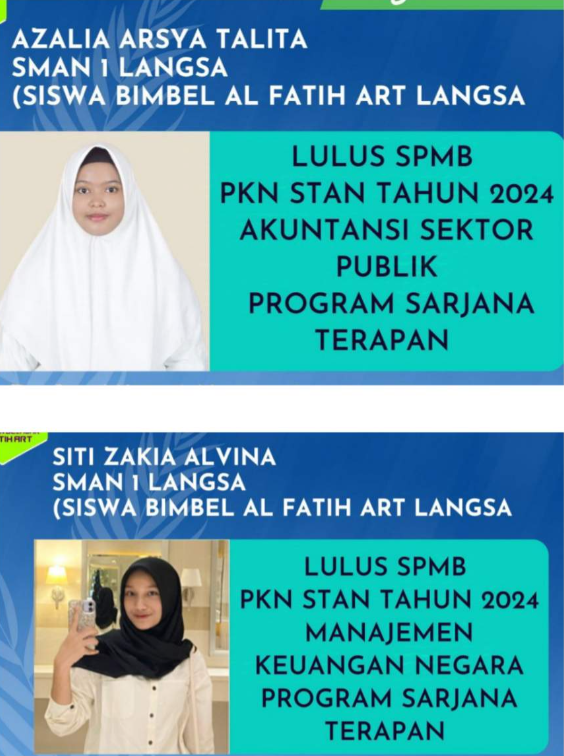 Saat ditanya kiat keberhasilan dua (2) siswanya yang berhasil lulus di PKN STAN yaitu Azalia Arsya Talita dan Siti Zakia Alvina Muktar Janan mengatakan bahwa selain dari peran aktif tenaga pendidik di SMA Negeri 1 Langsa kedua siswanya juga mengembangkan potensi dirinya untuk mengikuti Bimbingan Belajar (Bimbel) di Al Fatih yang berada di jalan A.Yani Komplek Asrama Guru Gampong PB Seulemak.