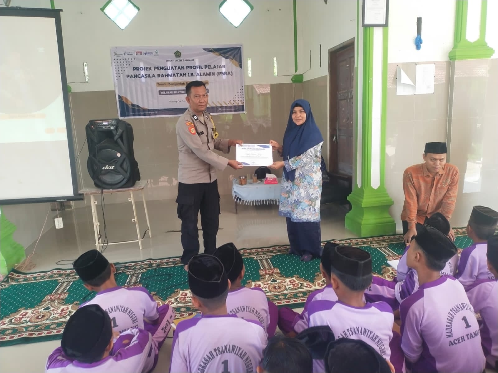 Kegiatan yang berlangsung pada Sabtu (24/5/2025) pukul 09.00 WIB di MTsN 1 Manyak Payed ini menghadirkan Aiptu Anwar Haji, Bhabinkamtibmas Polsek Manyak Payed, sebagai narasumber. Dalam kegiatan yang diikuti oleh sekitar 180 siswa kelas 7 dan 8 beserta dewan guru ini, Aiptu Anwar membawakan materi bertema “Stop Bullying”.