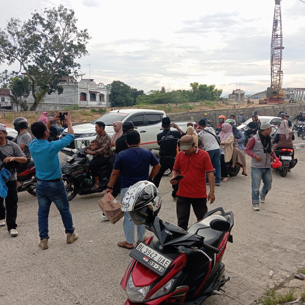 terlihat masyarakat sangat antusias menerima takjil yang dibagikan rekan rekan media kepada masyarakat yang melintasi jalan tersebut, termasuk para pekerja toko serta para abang becak, ikut serta mengambil takjil yang dibagikan.