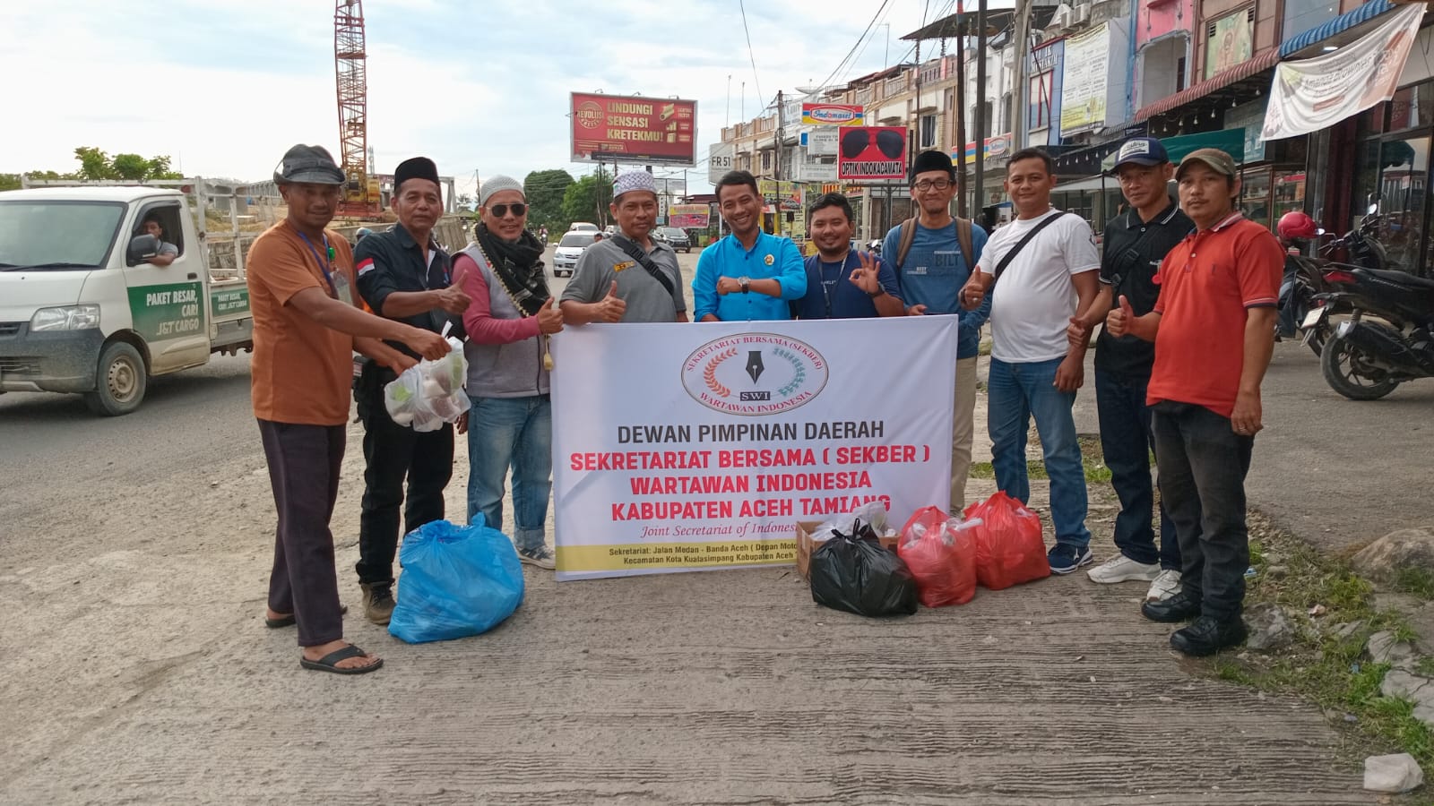 Pengurus Dewan Pimpinan Daerah (DPD) Sekber Wartawan Indonesia (SWI) Kabupaten Aceh Tamiang membagikan ratusan takjil untuk berbuka puasa pada Ramadhan 1446 H di lintasan Jalan Cut Nyak Dhien Kecamatan Kota kualasimpang , Kabupaten Aceh Tamiang. Jum’at (14/03/2025 ).