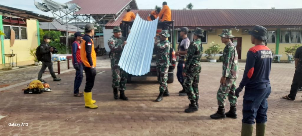 Bekerjasama dengan Badan Penanggulangan Bencana Daerah (BPBD) dan warga sekitar, para Anggota Koramil 02/Karang Baru melaksanakan gotong royong membersihkan puwing sekola SD IT Darul Mukhlisin yang terkena puting beliung serta melakukan perbaikan. Hal ini dilakukan sebagai langkah awal dan wujud kepedulian TNI terhadap kesulitan masyarkat, khususnya cepat tanggap dan siap siaga terhadap bencana alam.