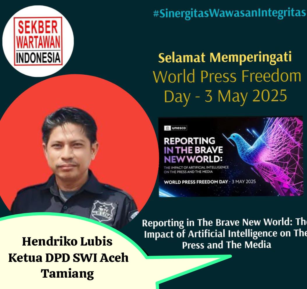 Aceh Tamiang – Dunia jurnalistik kini tengah menghadapi babak baru seiring dengan kemajuan teknologi kecerdasan buatan atau Artificial Intelligence (AI). Momen Hari Kebebasan Pers Sedunia 2025 yang diperingati setiap 3 Mei dimanfaatkan oleh DPD Sekber Wartawan Indonesia (SWI) Aceh Tamiang dan Pemerintah Kabupaten Aceh Tamiang untuk menyuarakan pentingnya kesiapan insan pers dalam menghadapi disrupsi digital yang kian nyata.