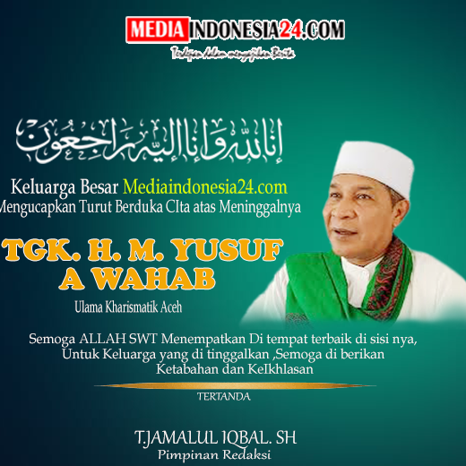 MEDIAINDONESIA24.COM – ACEH .Telah meniggal Dunia Ulama Karismatik Aceh dan Tokok masyarakat Aceh , Teungku H.Muhammad Yusuh A Wahab atau yang lebih DI kenal Tu Sop , Di kabarkan telah berpulang ke Rahmatullah pada Sabtu (7/9/2024) pukul 09.00 WIB di Jakarta.