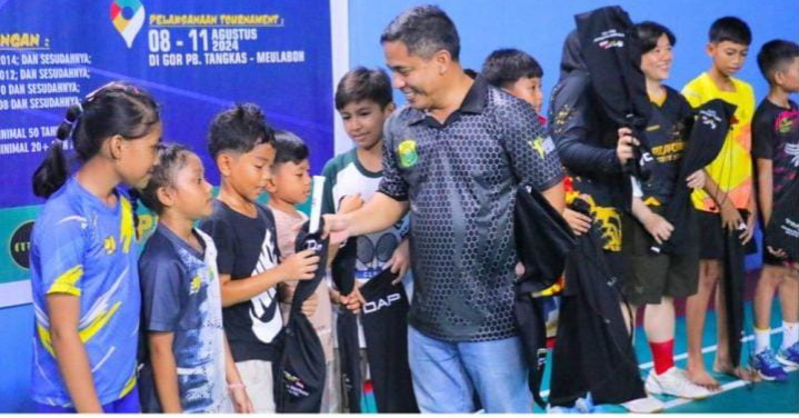 Mediaindonesia24.com,Aceh Barat—-Wakil Ketua II PBSI Aceh Barat Dr. Kurdi yang juga Kadis PUPR Kabupaten setempat membagikan puluhan raket kepada atlet Badminton aktif sebagai bonus dalam Kejuaraan Bulutangkis PBSI Aceh Barat Se-Aceh di PB Tangkas Rundeng, Kecamatan Johan Pahlawan, Kabupaten Aceh Barat , Sabtu (10/8/2024).