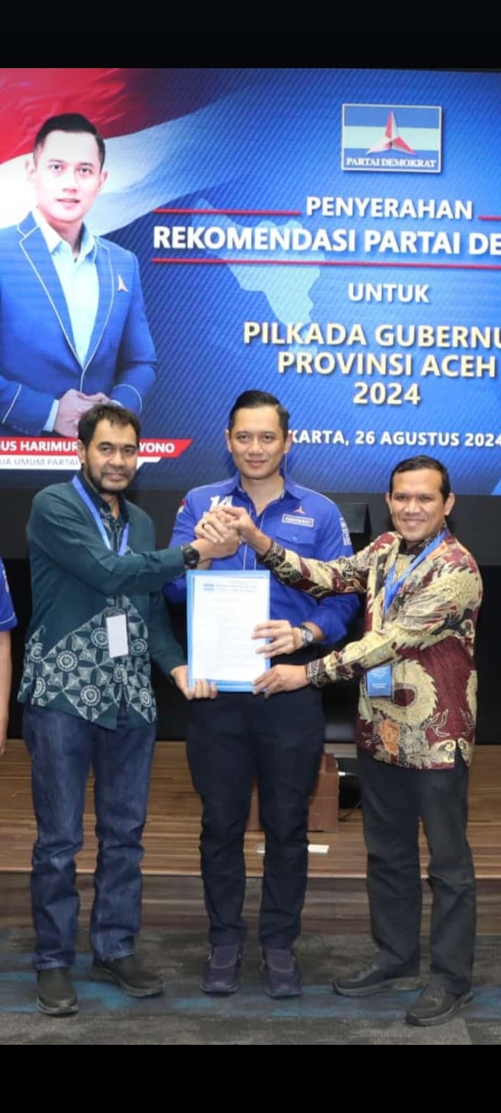 JAKARTA , Media Indonesia 24com*/- Partai Demokrat memberikan surat rekomendasi kepada pasangan Muzakir Manaf (Mualem) – Fadhlullah (Dek Fad) untuk diusung maju di Pilkada Aceh 2024.