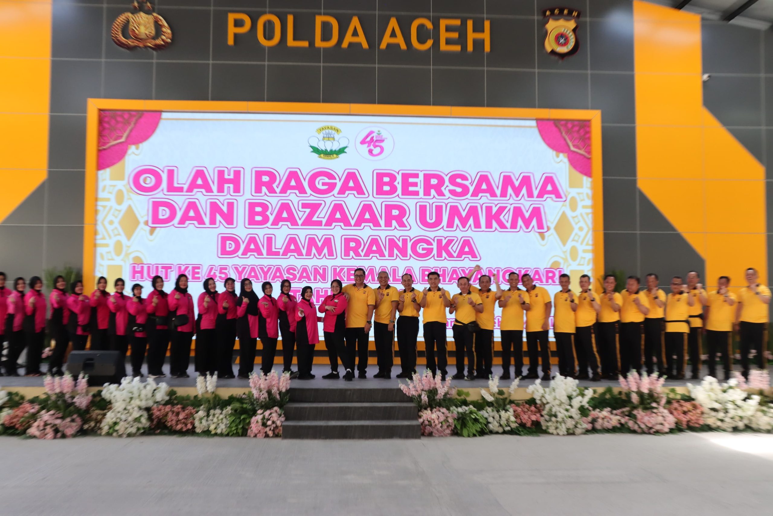 Ia juga menyampaikan, sebelum pelaksanaan bazar, terlebih dahulu digelar olahraga bersama yang diikuti oleh seluruh keluarga besar Bhayangkari Daerah Aceh dan personel Polda Aceh. Olahraga bersama tersebut juga merupakan bagian dari rangkaian peringatan HUT ke-45 Yayasan Kemala Bhayangkari.
