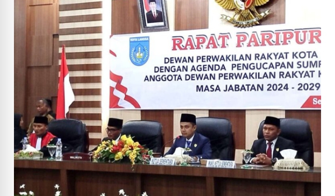 Mediaindonesia24.com,Langsa,Aceh—— Pelantikan dan sumpah jabatan anggota DPRK Langsa periode 2024-2029 baru saja dilaksanakan dan Jeffry Sentana S Putra diumumkan menjadi Ketua DPRK Langsa sementara, Senin (02/09/2024).