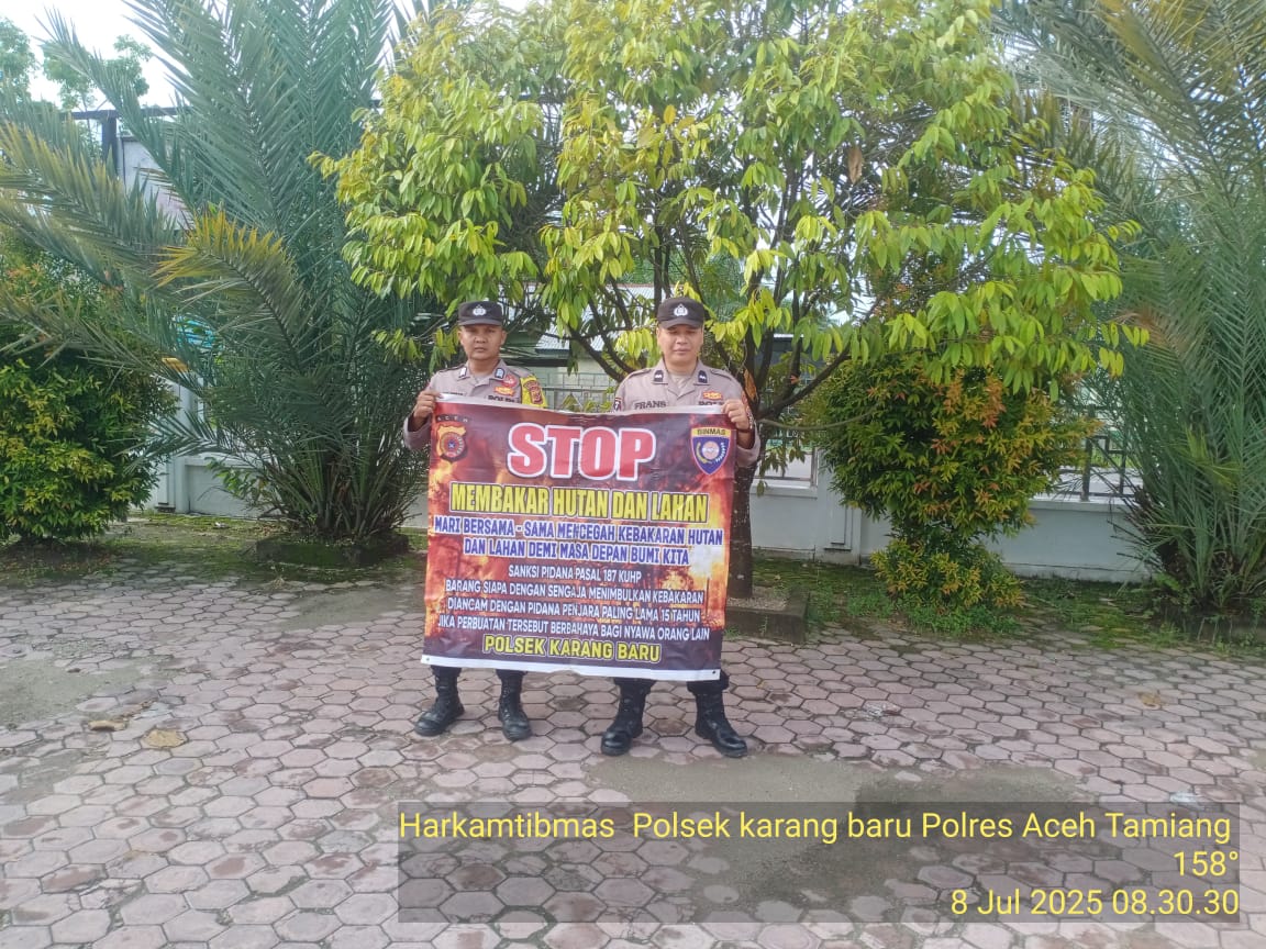 ACEH TAMIANG – Polda Aceh, Polres Aceh Tamiang melalui Personil Polsek Karang Baru melakukan Patroli sekaligus menyampaikan sosialisasi bahayanya melakukan pembakaran dalam rangka pencegahan dan himbauan terkait kebakaran hutan dan lahan (Karhutla). Selasa (8/07/2025).