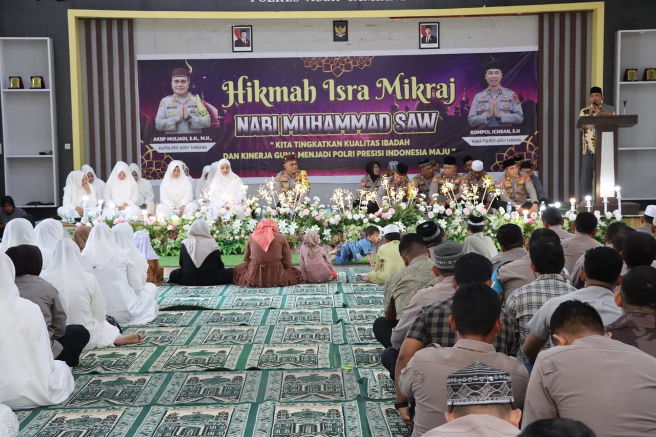 Dalam sambutannya, Kapolres Aceh Tamiang menekankan pentingnya mengambil hikmah dari peristiwa Isra Miraj untuk meningkatkan kualitas ibadah dan kinerja sebagai abdi negara.