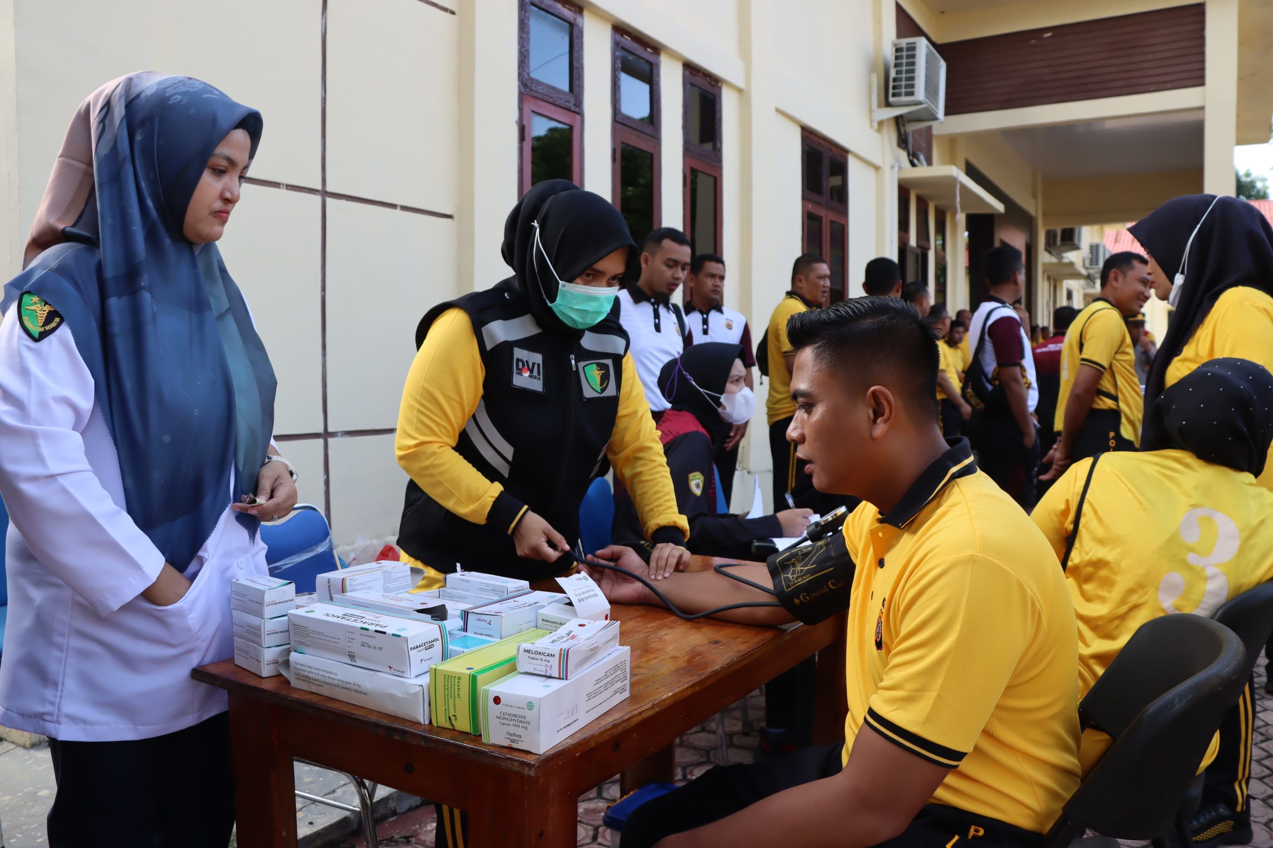 Sebelum melaksanakan TKJ, personel Polres Aceh tamiang wajib melakukan pengecekan kesehatannya terlebih dahulu, dalam hal pengecekan kesehatan dilakukan tim Si Dokkes Polres Aceh tamiang untuk memastikan kondisi kesehatan para personel.