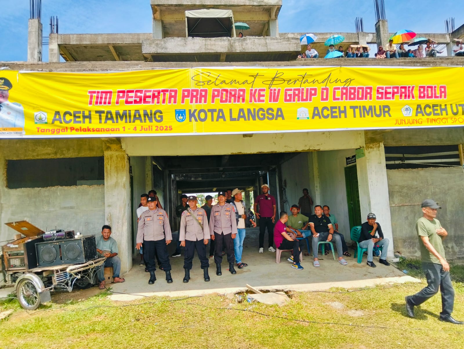 Aceh Tamiang – sebanyak 40 personel Polres Aveh tamiang melaksanakan pengamanan turnamen Pra pora ke IV cabang olah raga Sepakbola Grup D yang berlokasi di Stadion Kabupaten Aceh Tamiang. Kamis 3 Juli 2025