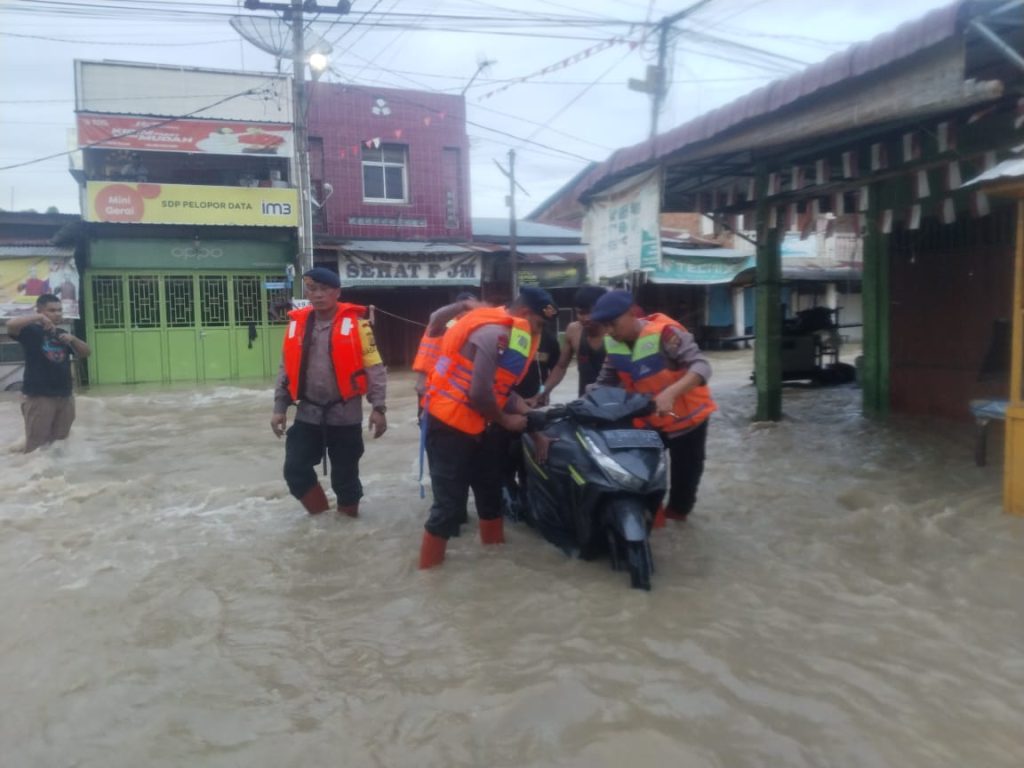 Menindaklanjuti hal tersebut. Danki 2 Batalyon B Pelopor AKP Rizaldi memimpin langsung pelaksanaan patroli SAR dan Quick Respon, Mengecek seraya memastikan kondisi masyarakat yang rumahnya terdampak bencana banjir.