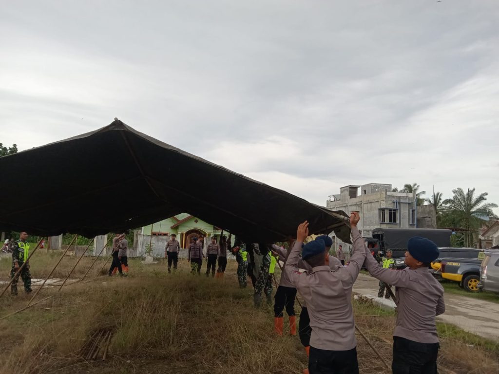 Quick Respon, Brimob Kompi 2 Batalyon B Pelopor Aramiyah Evakuasi Banjir Dan mendirikan Posko Siaga Banjir Di Desa Pekan Seruway Kec. Seruway Kab. Aceh Tamiang