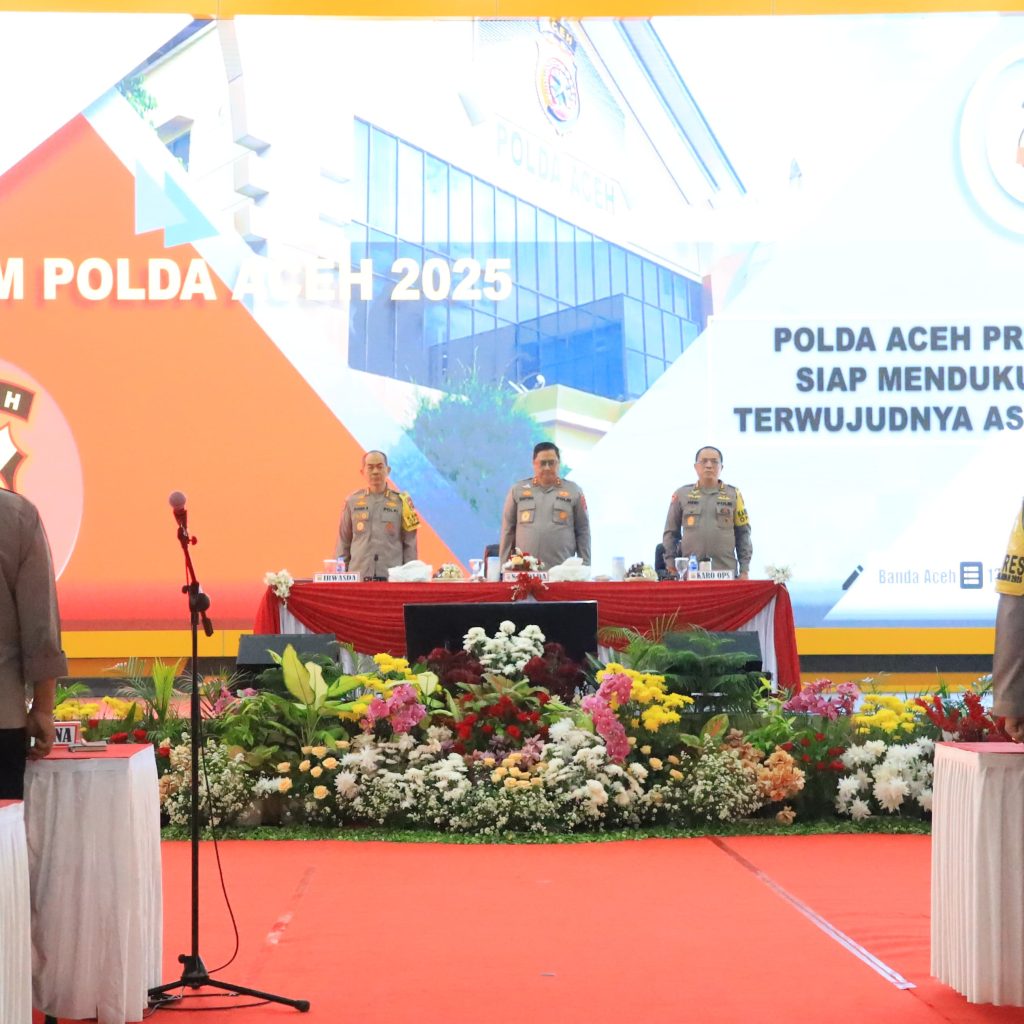 Banda Aceh — Kapolda Aceh, Irjen Achmad Kartiko, memimpin rapat pimpinan (Rapim) tingkat Polda Aceh tahun 2025 yang digelar di Indoor Meuligoe Polda Aceh pada Kamis, 13 Februari 2025. Rapim tersebut merupakan tindak lanjut dari Rapim tingkat Mabes Polri yang dilaksanakan beberapa waktu lalu.