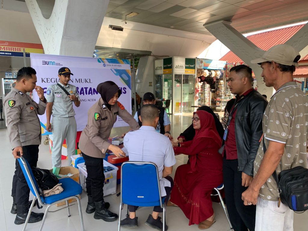 Satuan Tugas (Satgas) Operasi Lilin Seulawah-2024 Polda Aceh bersama Jasa Raharja memberikan pelayanan kesehatan gratis bagi masyarakat di Pos Pengamanan Pelabuhan Ulee Lheue, Kota Banda Aceh, Minggu, 22 Desember 2024.
