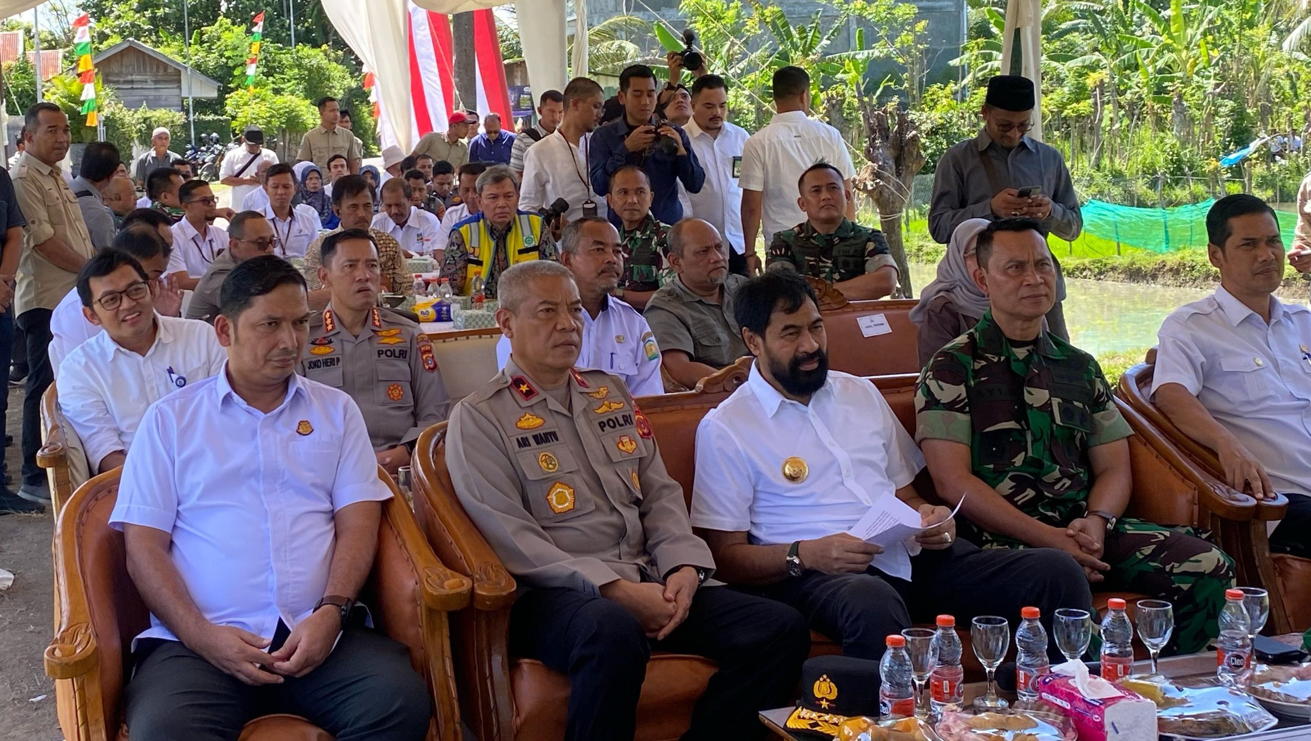 Jantho – Wakapolda Aceh Brigjen Ari Wahyu Widodo bersama Gubernur Aceh Muzakir Manaf serta unsur Forkopimda lainnya menghadiri secara virtual Gerakan Tanam Padi Serentak yang dilaksanakan di 14 provinsi. Di Aceh sendiri, kegiatan ini dipusatkan di Desa Pasie Eungking, Kecamatan Darul Imarah, Kabupaten Aceh Besar, Rabu, 23 April 2025.